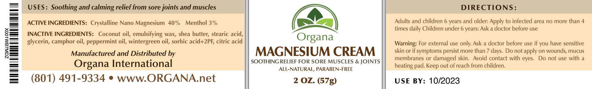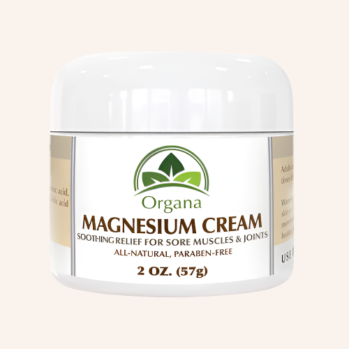 Using all natural ingredients, Organa Magnesium Cream is formulated to aid in the temporary and long term relief of sore muscles and joints. Peppermint, Wintergreen, Camphor and Menthol essential oils help cool the skin and soothe aches. Crystalline Nano Magnesium penetrates the skin to go deep in the muscles and joints.