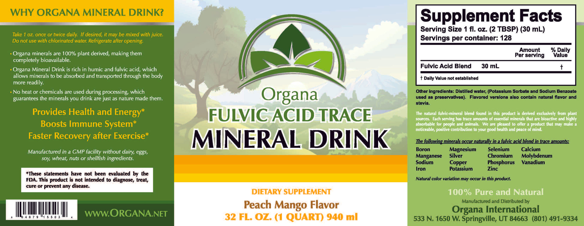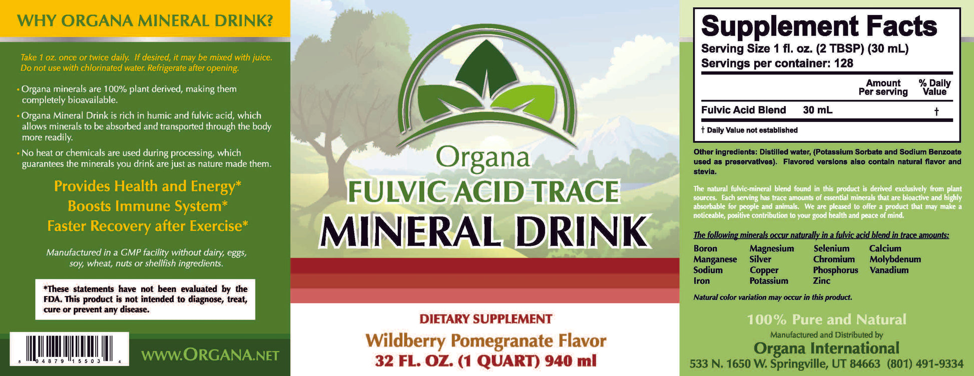 Organa Mineral drink is a natural supplement consisting of trace, bio-active, organic, plant based minerals. In addition to minerals, Organa Mineral Drink contains fulvic acid, making it one of the most complete mineral supplements on the market today.